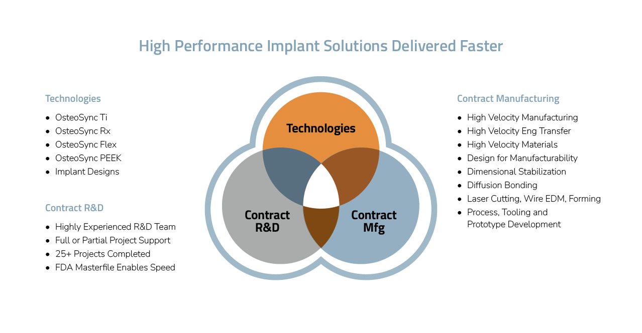 Our featured platform technology is OsteoSync Ti, a porous ingrowth material trusted by our OEM partners and marketed under various brand names. Additionally, we offer a range of technologies to meet your needs, including: